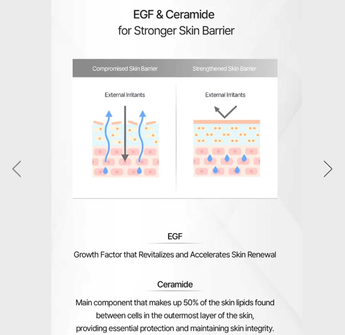 4. EGF En tillväxtfaktor som bidrar till att revitalisera huden och stödja hudens naturliga förnyelsecykel för en ungdomligare och mer strålande hy.